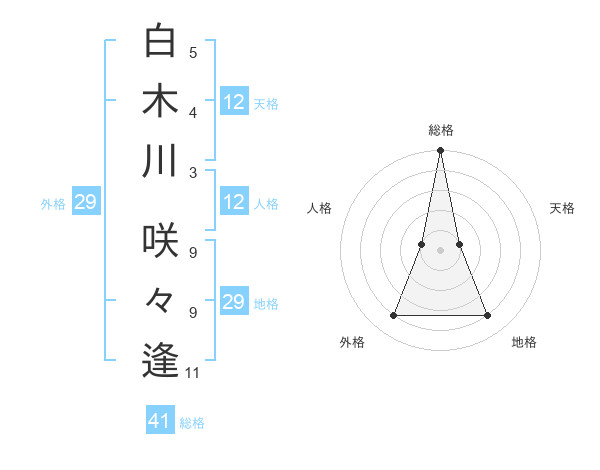 白木川 咲々逢さんを姓名の画数から五運を鑑定