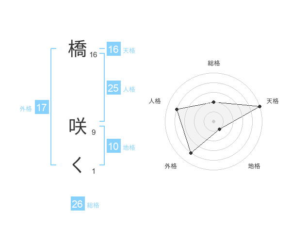 橋 咲くさんの天格は16画の5点!