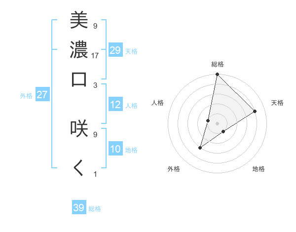 美濃口 咲くさんを姓名の画数から五運を鑑定