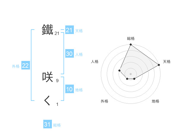 鐵 咲くさんの総格は31画の5点