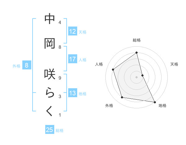 中岡 咲らくさんを姓名の画数から五運を鑑定