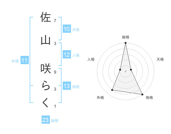 佐山 咲らくさんの総格は23画の5点!