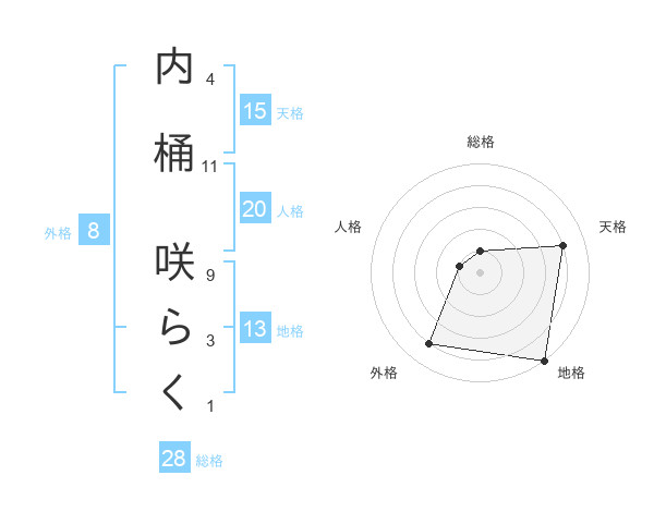 内桶 咲らくさんを姓名の画数から五運を鑑定