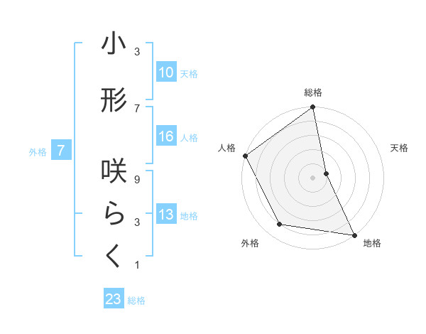 小形 咲らくさんを姓名の画数から五運を鑑定