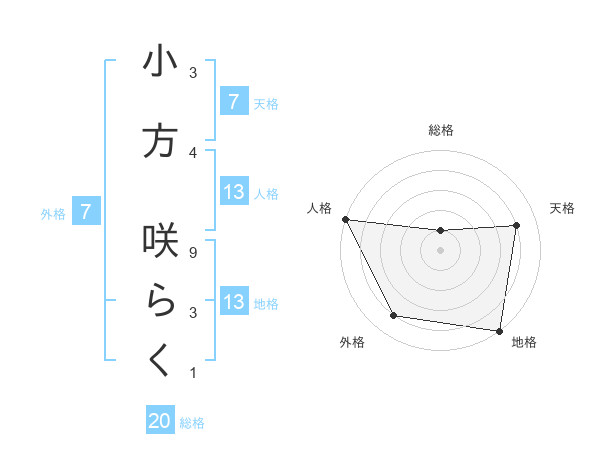 小方 咲らくさんを姓名の画数から五運を鑑定