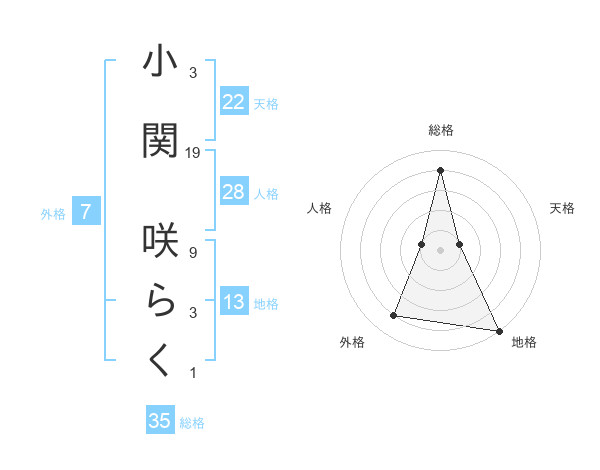 小関 咲らくさんを姓名の画数から五運を鑑定