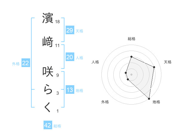 濱﨑 咲らくさんを姓名の画数から五運を鑑定