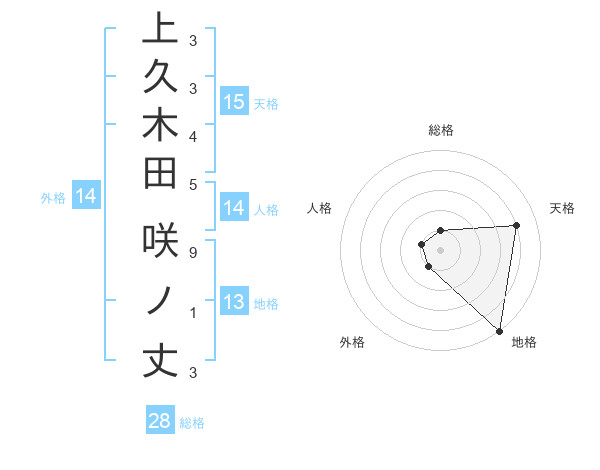 上久木田 咲ノ丈さんの天格は15画の4点!