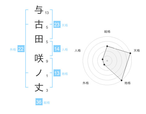 与古田 咲ノ丈さんを姓名の画数から五運を鑑定