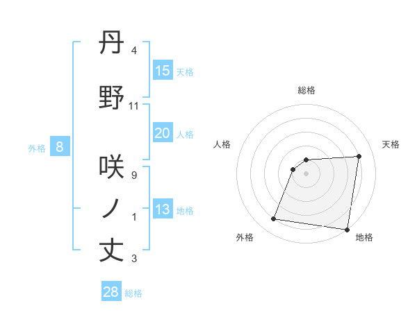 丹野 咲ノ丈さんを姓名の画数から五運を鑑定