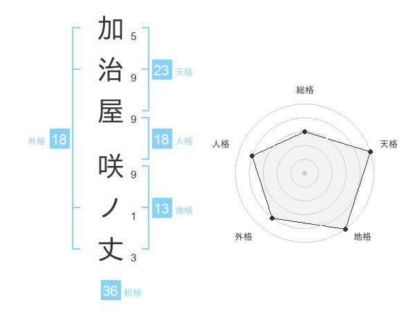 加治屋 咲ノ丈さんの天格は23画の5点!