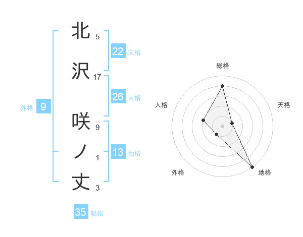 北沢 咲ノ丈さんを姓名の画数から五運を鑑定