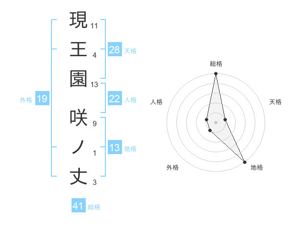 現王園 咲ノ丈さんを姓名の画数から五運を鑑定