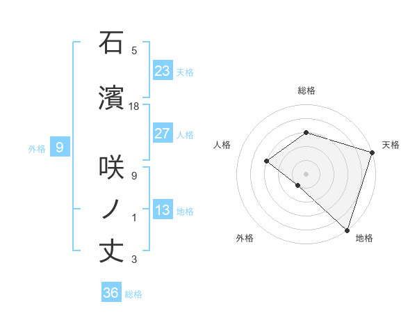 石濱 咲ノ丈さんを姓名の画数から五運を鑑定