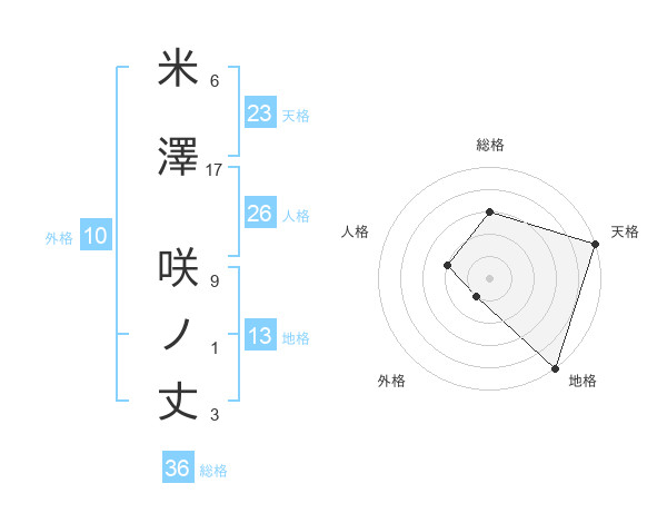 米澤 咲ノ丈さんを姓名の画数から五運を鑑定