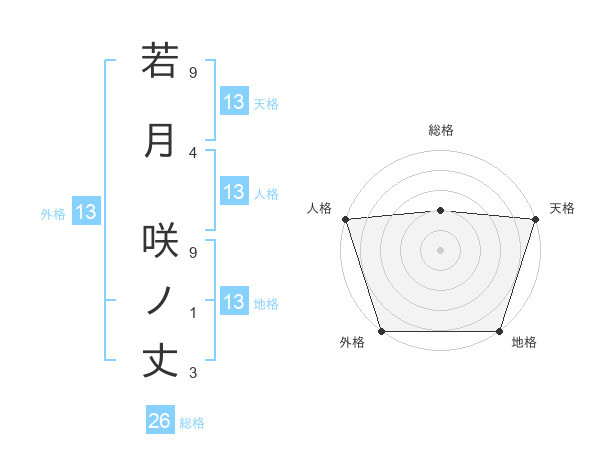 若月 咲ノ丈さんを姓名の画数から五運を鑑定