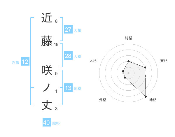 近藤 咲ノ丈さんを姓名の画数から五運を鑑定