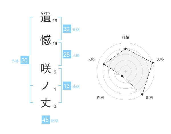 遺憾 咲ノ丈さんの総格は45画の4点!