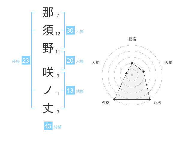 那須野 咲ノ丈さんを姓名の画数から五運を鑑定