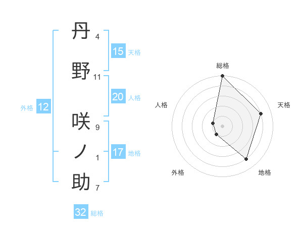 丹野 咲ノ助さんを姓名の画数から五運を鑑定