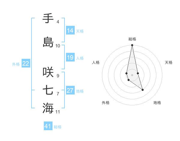 手島 咲七海さんの総格は41画の5点!