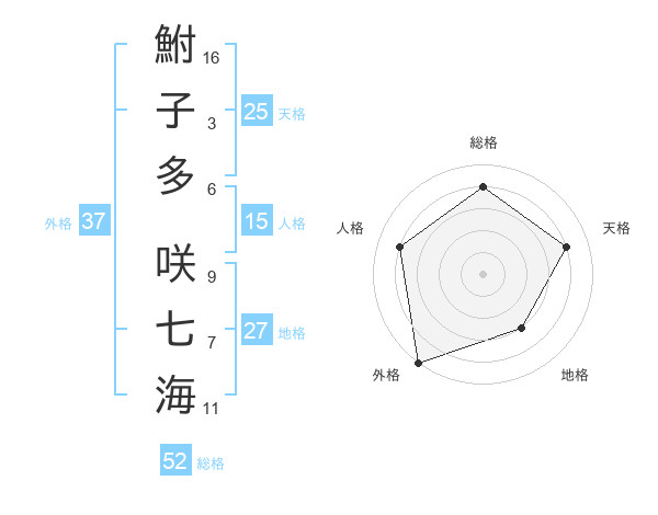 鮒子多 咲七海さんを姓名の画数から五運を鑑定