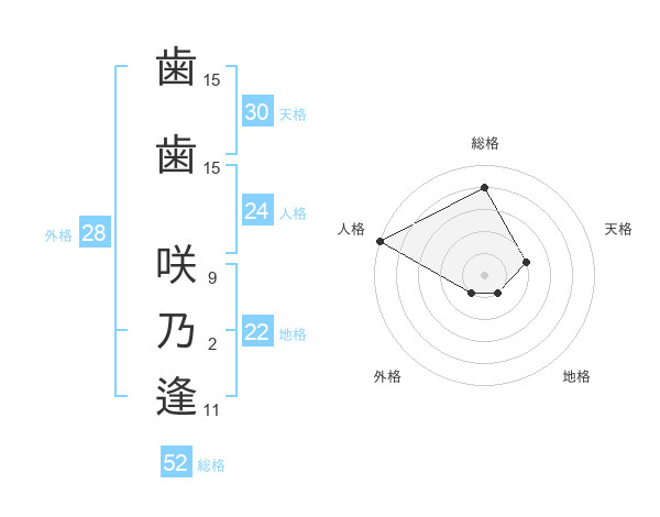 歯歯 咲乃逢さんを姓名の画数から五運を鑑定