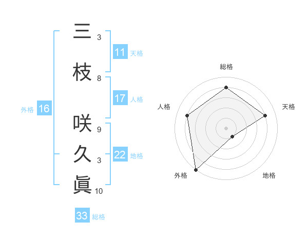 三枝 咲久眞さんを姓名の画数から五運を鑑定