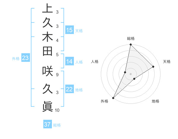 上久木田 咲久眞さんを姓名の画数から五運を鑑定