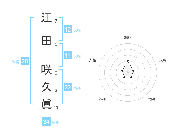 江田 咲久眞さんの地格は22画の1点!