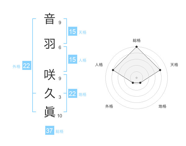 音羽 咲久眞さんの総格は37画の5点!