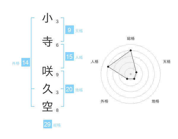 小寺 咲久空さんを姓名の画数から五運を鑑定