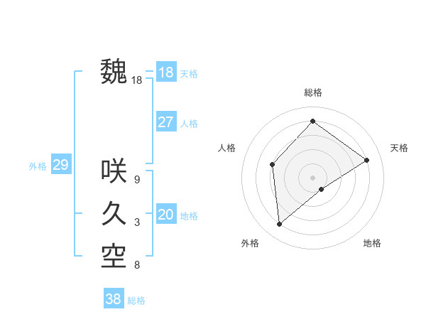 魏 咲久空さんを姓名の画数から五運を鑑定