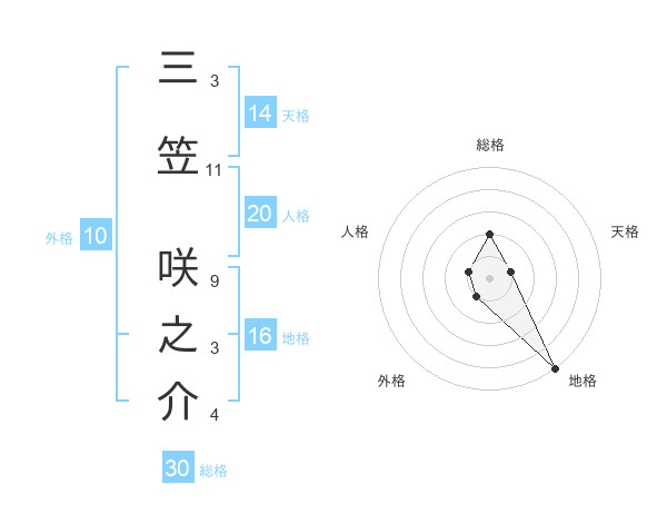 三笠 咲之介さんの総格は30画の2点!