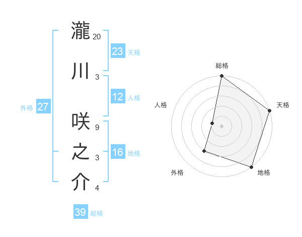 瀧川 咲之介さんを姓名の画数から五運を鑑定
