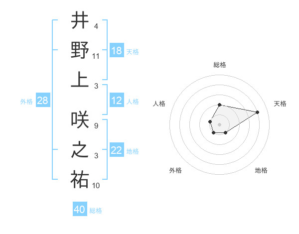 井野上 咲之祐さんを姓名の画数から五運を鑑定