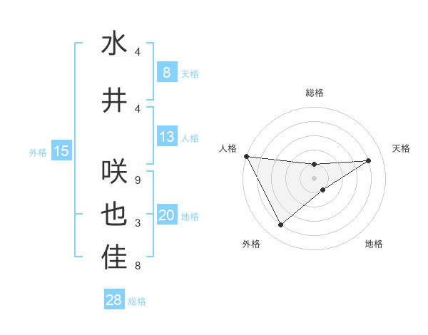 水井 咲也佳さんを姓名の画数から五運を鑑定