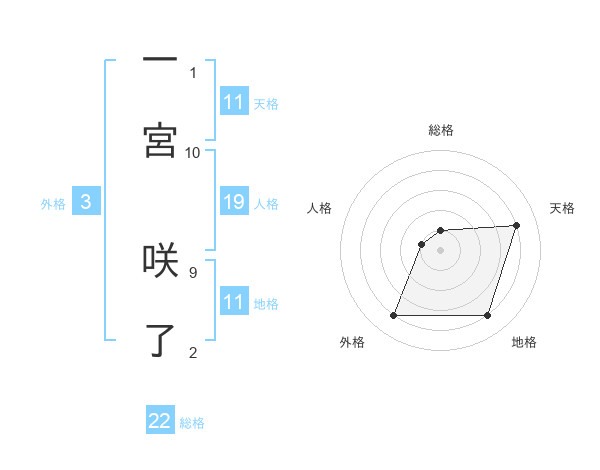 一宮 咲了さんの総格は22画の1点!