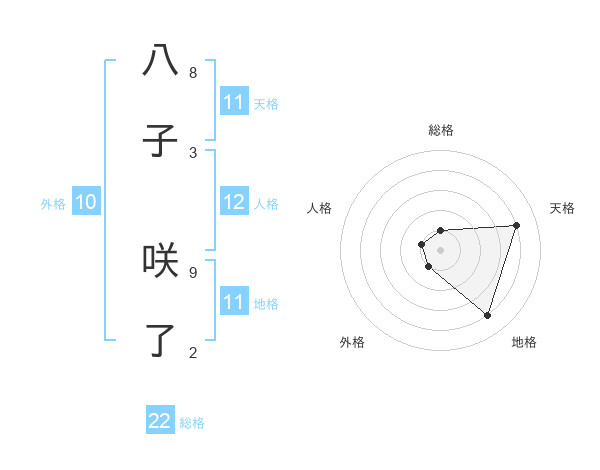 八子 咲了さんの総格は22画の1点!