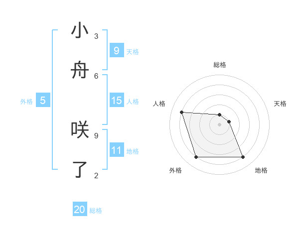 小舟 咲了さんの総格は20画の1点!