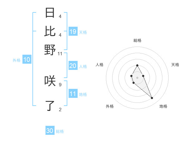 日比野 咲了さんの地格は11画の4点!
