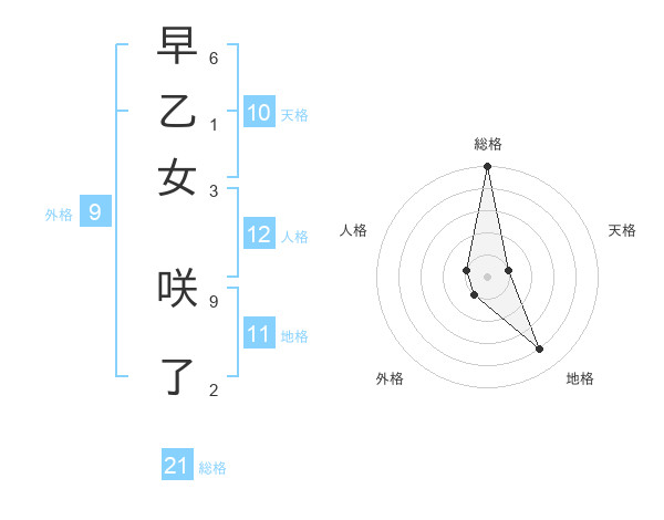 早乙女 咲了さんの総格は21画の5点!