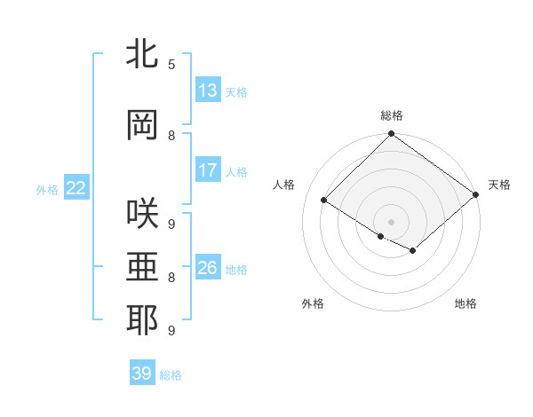 北岡 咲亜耶さんを姓名の画数から五運を鑑定