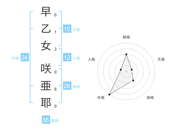 早乙女 咲亜耶さんを姓名の画数から五運を鑑定