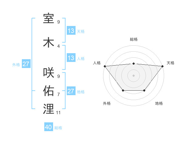 室木 咲佑浬さんの天格は13画の5点!