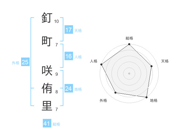 釘町 咲侑里さんを姓名の画数から五運を鑑定
