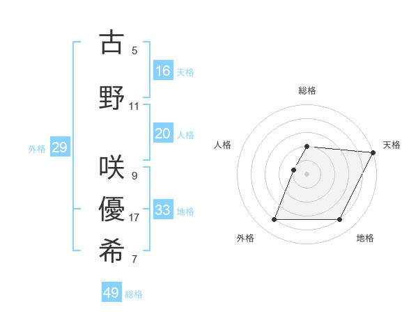 古野 咲優希さんを姓名の画数から五運を鑑定