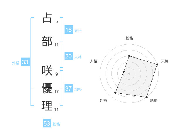 占部 咲優理さんを姓名の画数から五運を鑑定