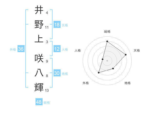 井野上 咲八輝さんの総格は48画の4点!