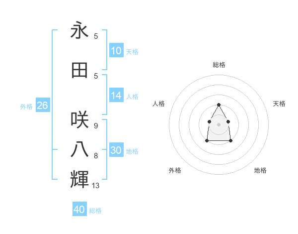 永田 咲八輝さんを姓名の画数から五運を鑑定